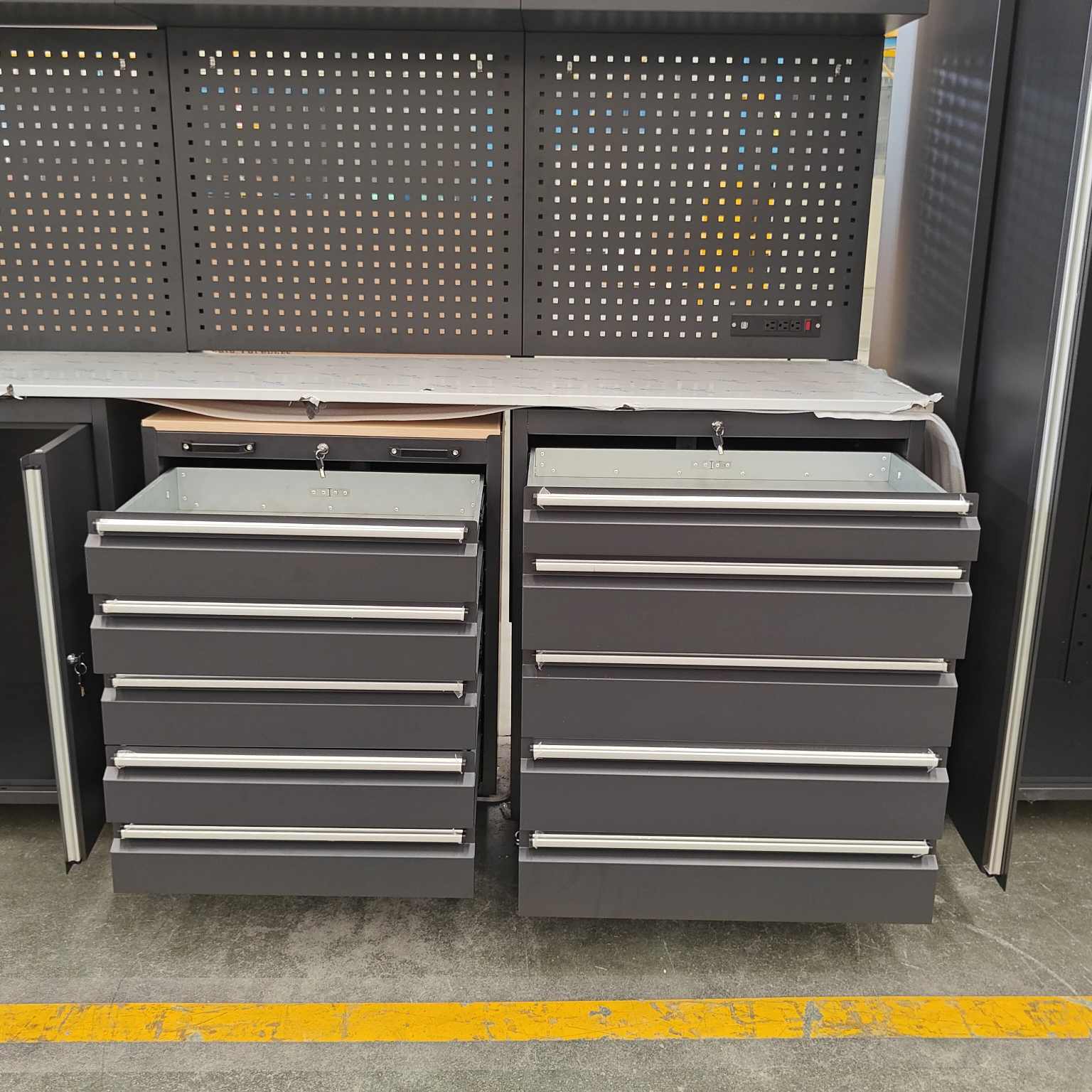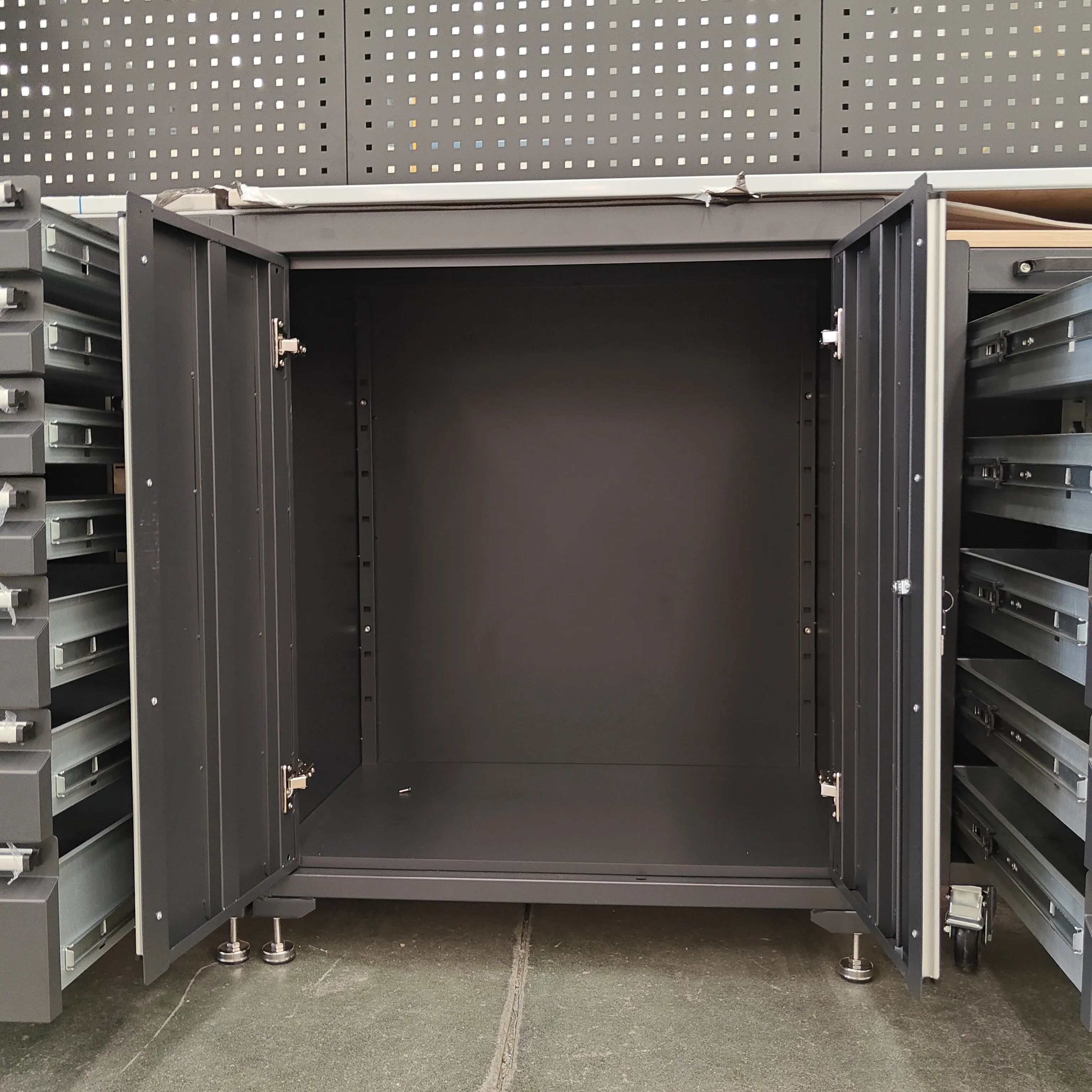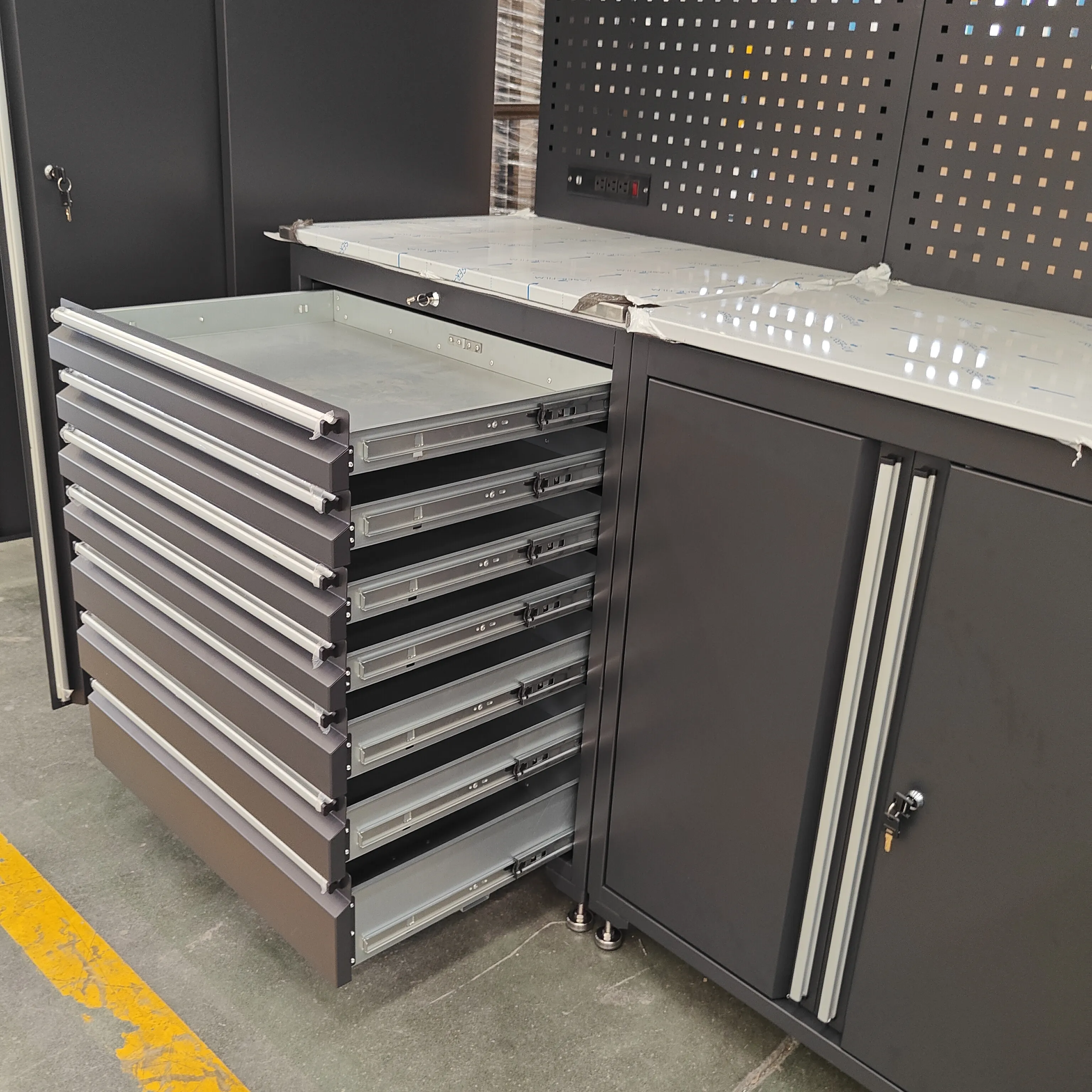 हैवी-ड्यूटी टूल कैबिनेट में प्रत्येक दराज के लिए एक खुले शेल्फ डिज़ाइन के साथ कई दराज हैं, जो विभिन्न आकार के टूल के लिए उपयुक्त हैं।