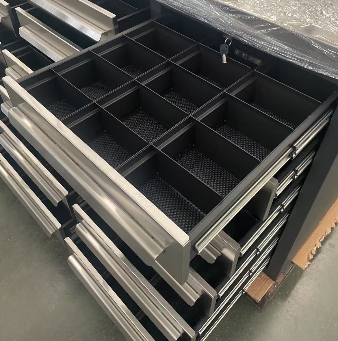 इस शिपमेंट की एक स्टैंडआउट सुविधा उन्नत दराज कॉन्फ़िगरेशन है। प्रत्येक दराज सटीक बॉल-असर स्लाइड से सुसज्जित है, 100% पूर्ण विस्तार का समर्थन करते हुए असाधारण रूप से चिकनी और सरल संचालन सुनिश्चित करता है। यह उपयोगकर्ताओं को किसी भी परेशानी के बिना बहुत पीछे से संग्रहीत उपकरणों तक पहुंचने की अनुमति देता है, जो सुविधा और दक्षता को बहुत बढ़ाता है।