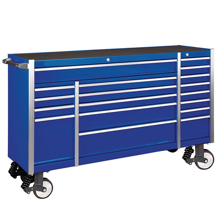 रोलिंग टूल कैबिनेट में विभिन्न टूल आकारों को समायोजित करने के लिए अलग -अलग गहराई के कई दराज शामिल हैं, और ईवा पैडिंग या रबर दराज लाइनर जो उपकरणों की रक्षा करते हैं और स्लाइडिंग को रोकते हैं।