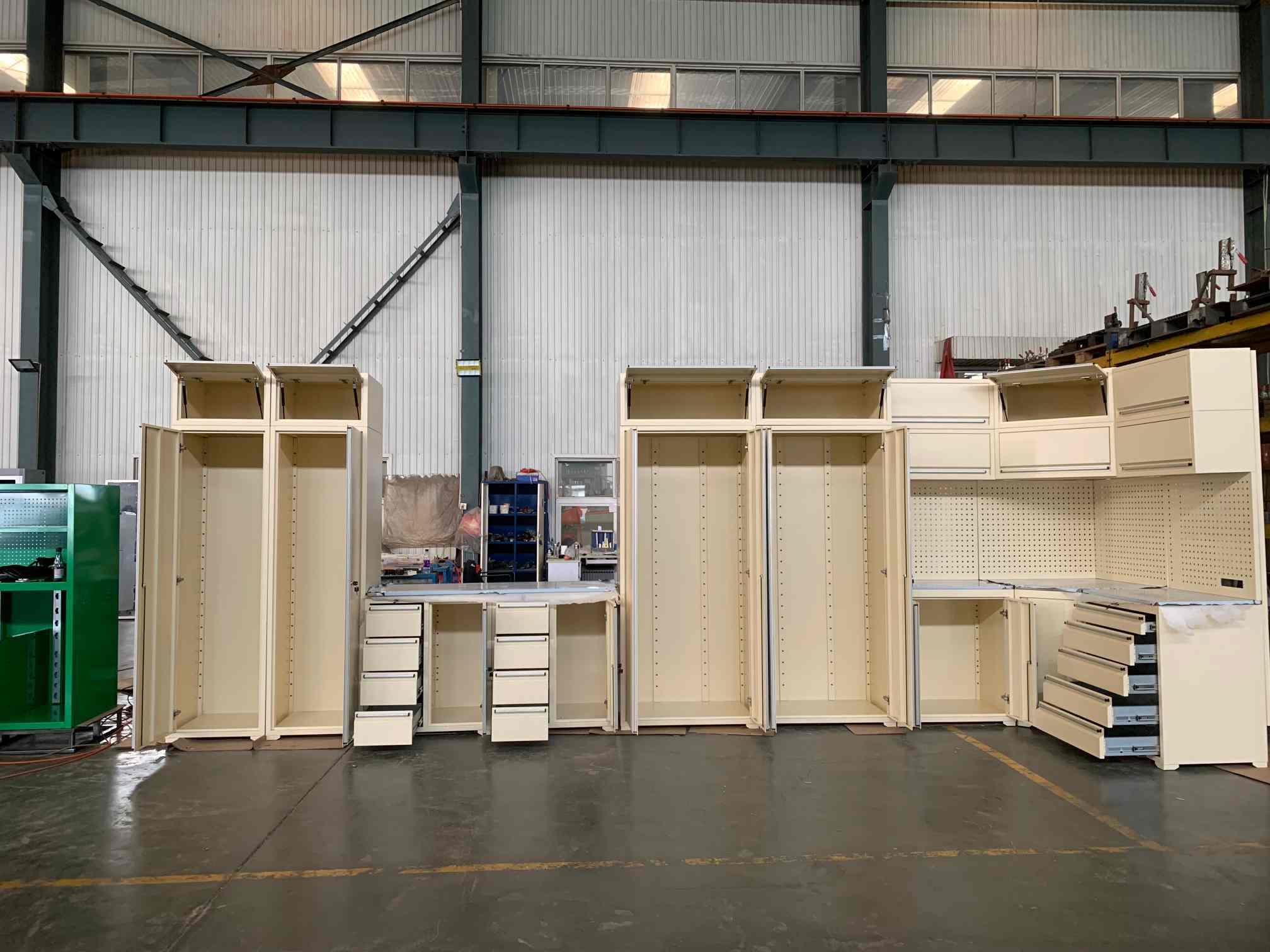 टूल कैबिनेट, टूल वर्कबेंच, गैराज कैबिनेट, टूल पिट कार्ट, टूल बॉक्स, चेस्ट एक्सेसर, कंटेनर हाउस और इतने पर।